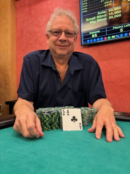 David Marcus wins the Wednesday night tournament at Coconut Creek Casino. This tournament featured a $130 buy-in and a guaranteed prize pool of $10,000. Well player David.