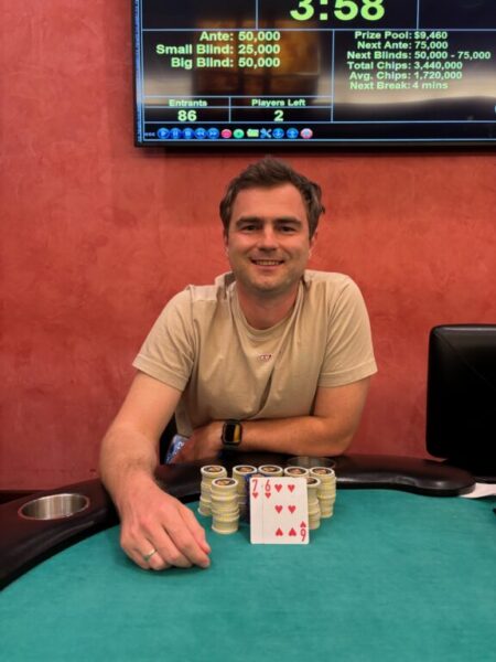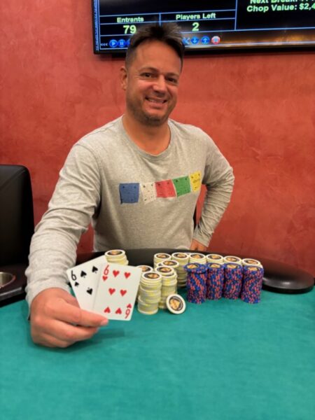 Marc Zabarsky wins $2,846 in the Wednesday night tournament that featured a $10.000 Guaranteed prize pool. Marc beat out a field of 136 players. Good job Marc!!