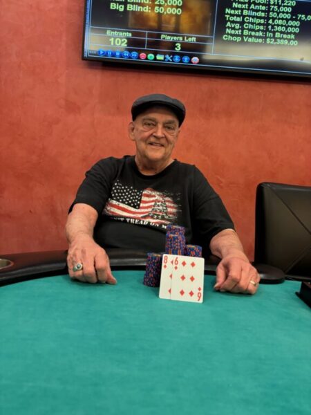 Andrew Del Rio wins the Wednesday night Tournament at the Coconut Creek casino. This tournament reached a $17,765 prize pool resulting in a $2,819 payout for Andrew in a 5 way chop.