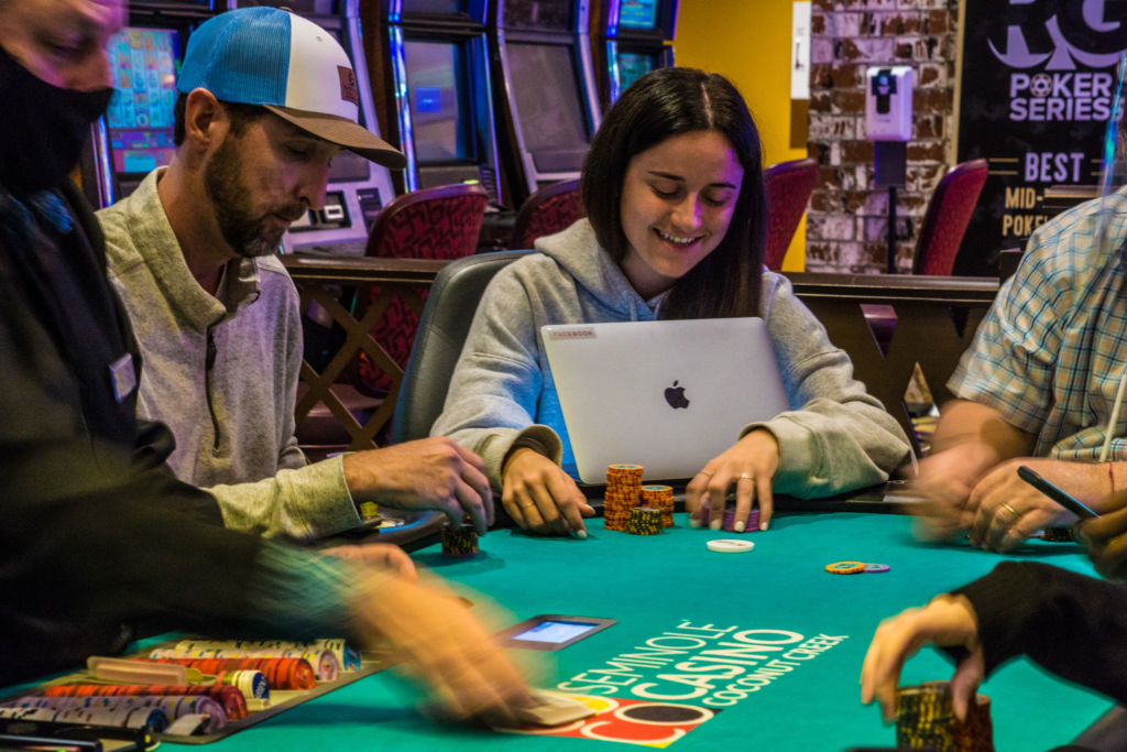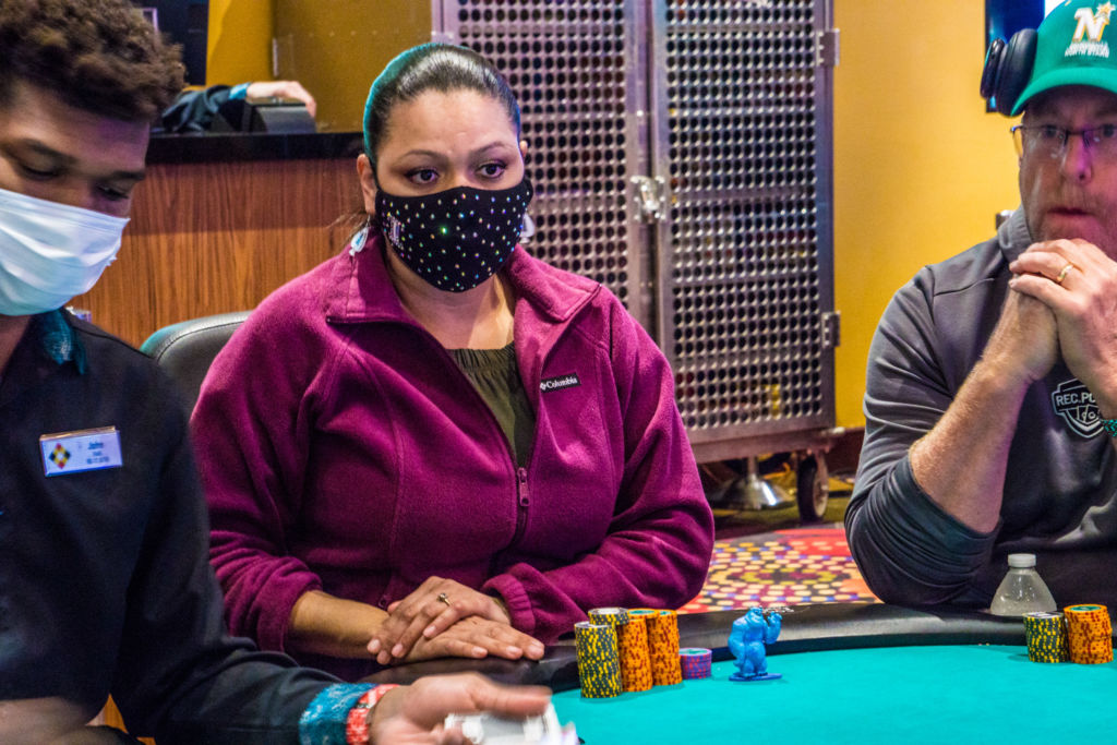 Meanwhile at a nearby table, Isolda White joined the leaders with 159,500 in the late stages of the day.