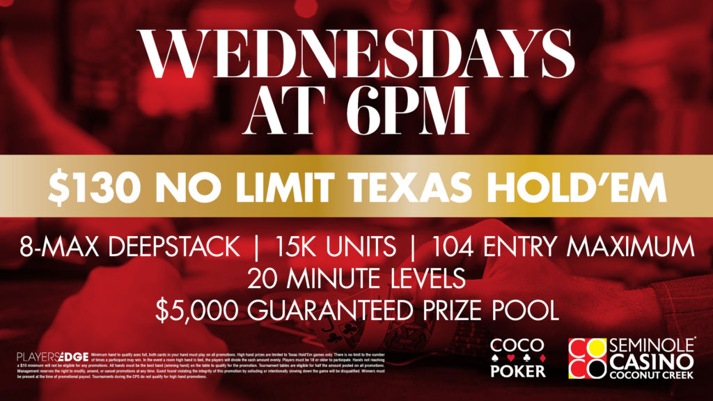 | Wednesday, January 20, 2021 | 6:00pm | $130 | $5,000 | - | NLH Deep Stack | Structure |