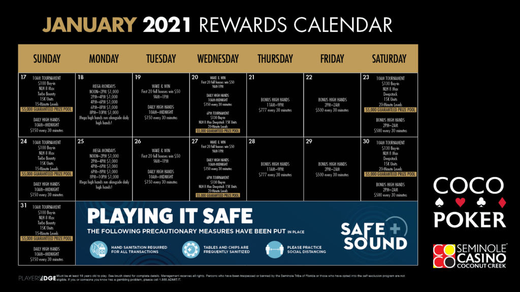 Poker Room January 2021 Promotions January 1, 2021 @ 10:00AM Cash Game PromotionsTournament Promotions