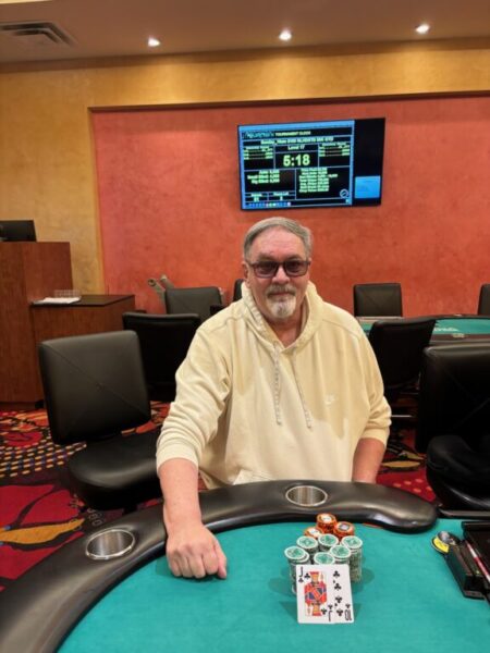 Congratulations to Stephen Wind for winning the Wednesday 6pm tournament for $2482. Stephen beat out a field of 129 players taking home 1st place honors in a 3-way chop.